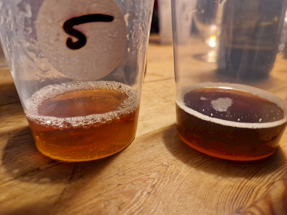 Desværre var der to hold, som havde valgt at kassere deres bryg i løbet af gæringsprocessen, hvor der enten var kommet en infektion eller havde udviklet sig på en måde, som de ikke kunne stå indenfor. I stedet for havde det ene hold fremskaffet nogle flasker af den originale Westvleteren 12 øl fra Belgien, som vi også fik lejlighed til at smage på.